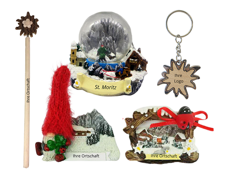 Im Sortiment finden Sie Magnete, Schlüsselanhänger, Schneekugeln, Filztäschli, Holzartikel etc