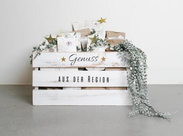 Diese stabile Holzkiste mit der Aufschrift „Genuss aus der Region“ ist die perfekte Verpackung für regionale Produkte oder als kreative Basis für einen selbstgemachten Adventskalender. Ob für Käse, Konfi, Wein, Tee oder andere Leckereien – der Harass überzeugt durch Natürlichkeit und Vielseitigkeit. Ideal zum Verschenken oder als dekoratives Element im eigenen Zuhause.