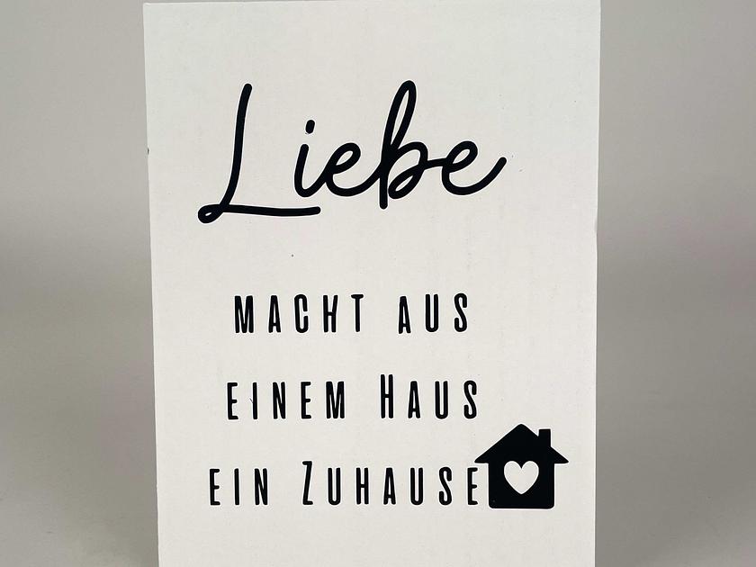 Dieses wunderschöne Holzschild (Masse: 15 x 20 cm) bringt die Bedeutung von Liebe in Ihrem Zuhause auf den Punkt. Mit seinem klaren, modernen Design in Schwarz auf dem kleinen Holzbrett und einem kleinen Herz-Haus-Motiv verleiht es jedem Raum eine liebevolle Note. Perfekt für den Eingangsbereich, das Wohnzimmer oder als besonderes Geschenk für Freunde und Familie. Dieses Schild ist eine zeitlose Erinnerung daran, dass Liebe der wichtigste Bestandteil eines Zuhauses ist.