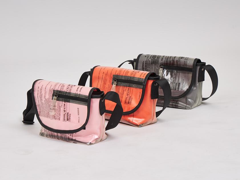 Over a million bags are discarded monthly in Thailand. We recycle these bags, sourced from home-treated patients, and transform them with the help of trained elderly women in a slum community. This aesthetically unique material is stronger than cow leather.